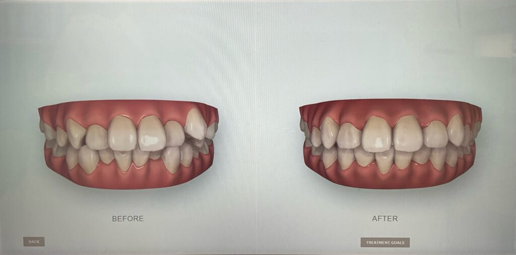 マウスピース矯正治療では、治療開始前にコンピューターシュミレーションにより、最終の歯列のイメージ(シュミレーション)が、されることが多く治療の見通しが立てやすいです。これは、3Dシュミレーション技術により、治療前と治療後の状態をイメージすることができます。また、口腔内の精密スキャン分析することによって、各段階で歯がどのように移動するかをシュミレーションすることができます。このことは、患者様へのモチベーション向上にも大きく役立っています。