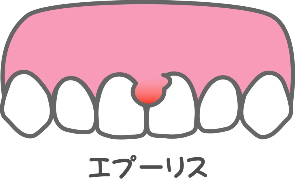妊娠中の女性ホルモンの影響で、歯ぐきに こぶのような腫れものができることがあります。これを妊娠性エプーリスと呼びます。主に妊娠中期ごろにでき、赤く腫れて出血しやすいのが特徴です。多くの場合、出産後自然に消失していきますが、歯磨き不足で悪化することもありますので、気を付けなければなりません。好発部位としては、上顎の前歯付近です。