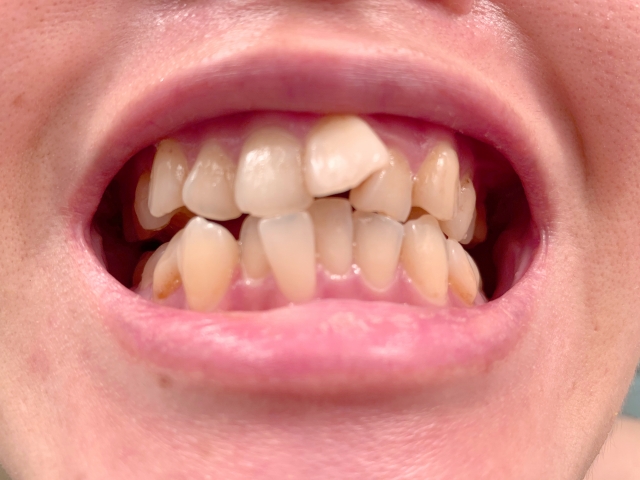 口腔内です。歯並びが悪く、歯が重なり合っていると、歯ブラシの毛先が届きにくい部分ができてしまいます。磨き残しができてしまうということは、食べ物やプラークが残ってしまい、虫歯や歯周病のリスクが高くなります。また、歯並びが悪く噛み合わせが悪い場合(開咬など)は、食べ物をうまく咬むことができないため、唾液の分泌量が減少してしまいます。唾液は口腔内環境を維持する働きがあり、洗浄作用、緩衝(中和)作用、抗菌作用などがあります。