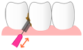 多くの場合、前歯部では、SSSまたはSSサイズ、奥歯でSSまたはSサイズ、歯周病が進行して歯間の隙間が広いケースでは、MやLサイズを使用することがあります。