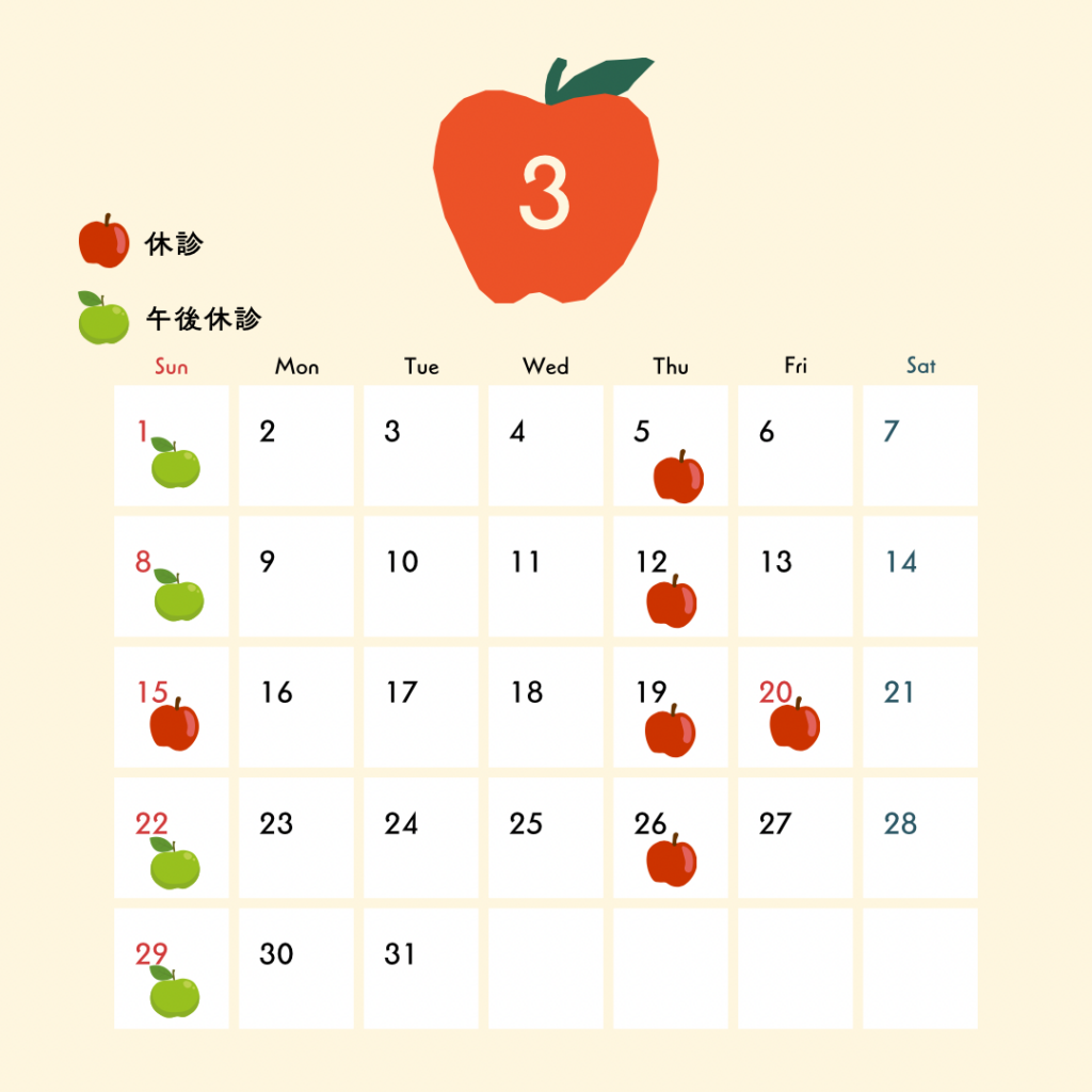 3月の休診日のお知らせです。